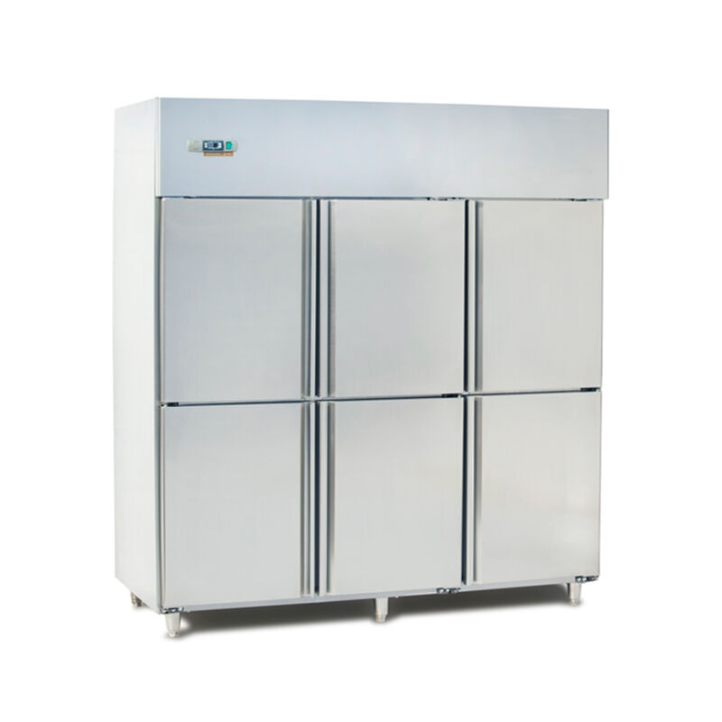 This commercial refrigerator features an environmentally friendly CFC-free refrigerant foam insulation system. Constructed entirely from stainless steel with polished interior rounded corners for effortless cleaning, it ensures both durability and hygiene. Temperature is precisely regulated via an electronic thermostat and clearly displayed on an LED digital screen. The cabinet is equipped with 50mm-thick insulation for optimal energy efficiency. The magnetic door seal can be replaced quickly and easily without the need for tools.
